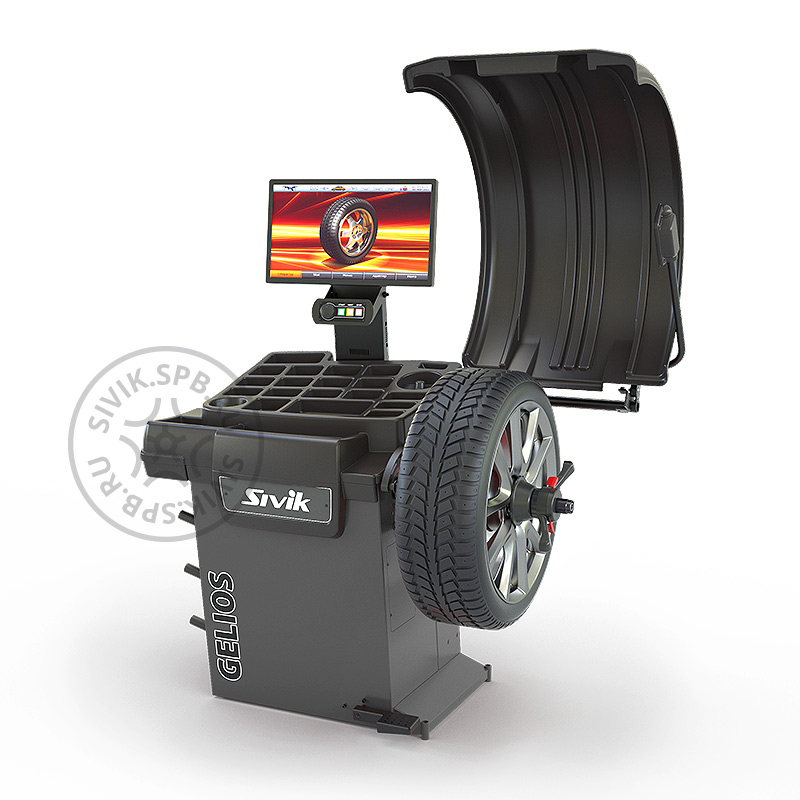 Sivik GELIOS NEW УЗ + ТЛУ (Гелиос УЗ + ТЛУ) - обновленная версия (серийное производство - с 01.07.2021 г.) балансировочного станка с автоматическим вводом всех параметров балансируемого колеса, с ЖК-дисплеем высокого разрешения 22″, для балансировки дисков диаметром 10″-28″.