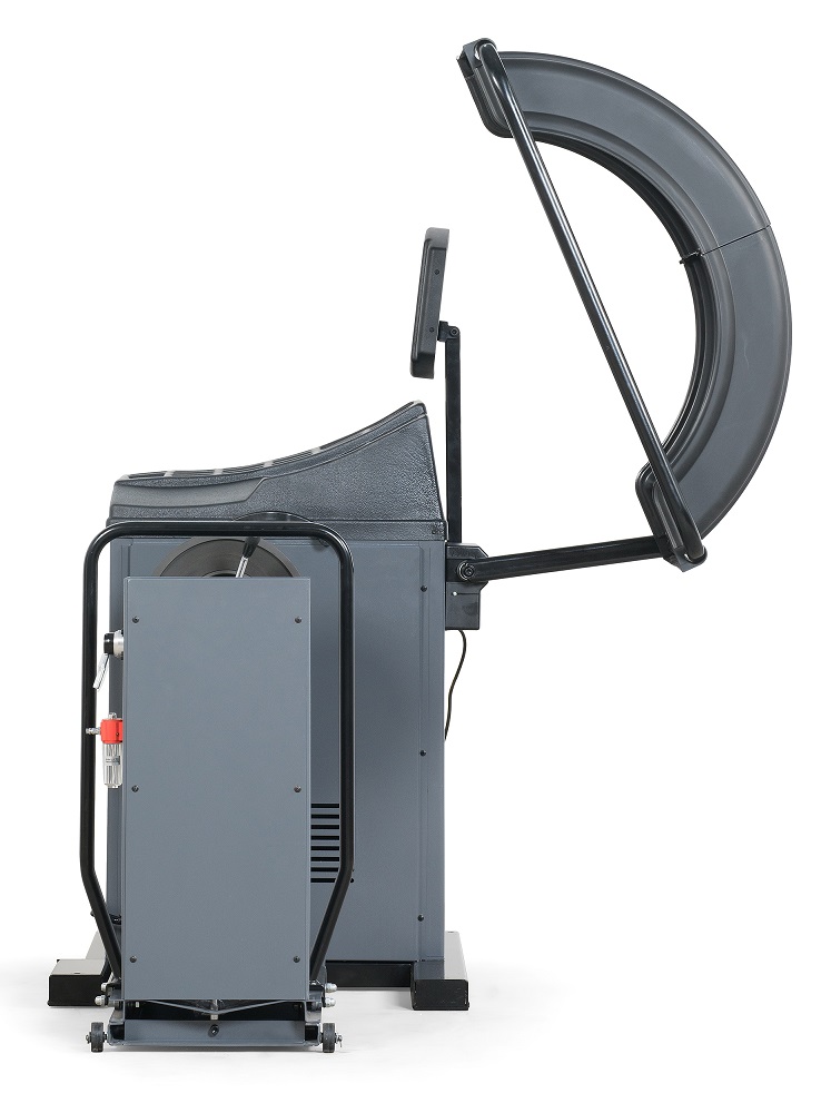 Балансировочный станок, выносной дисплей, автоматическое измерение величины вылета и диаметра колеса, диаметр диска Ø 12-24", ширина диска 1,5-12", вес колеса до 65кг., мотор 220V/0,257 kWt, точность балансировки + 1г.