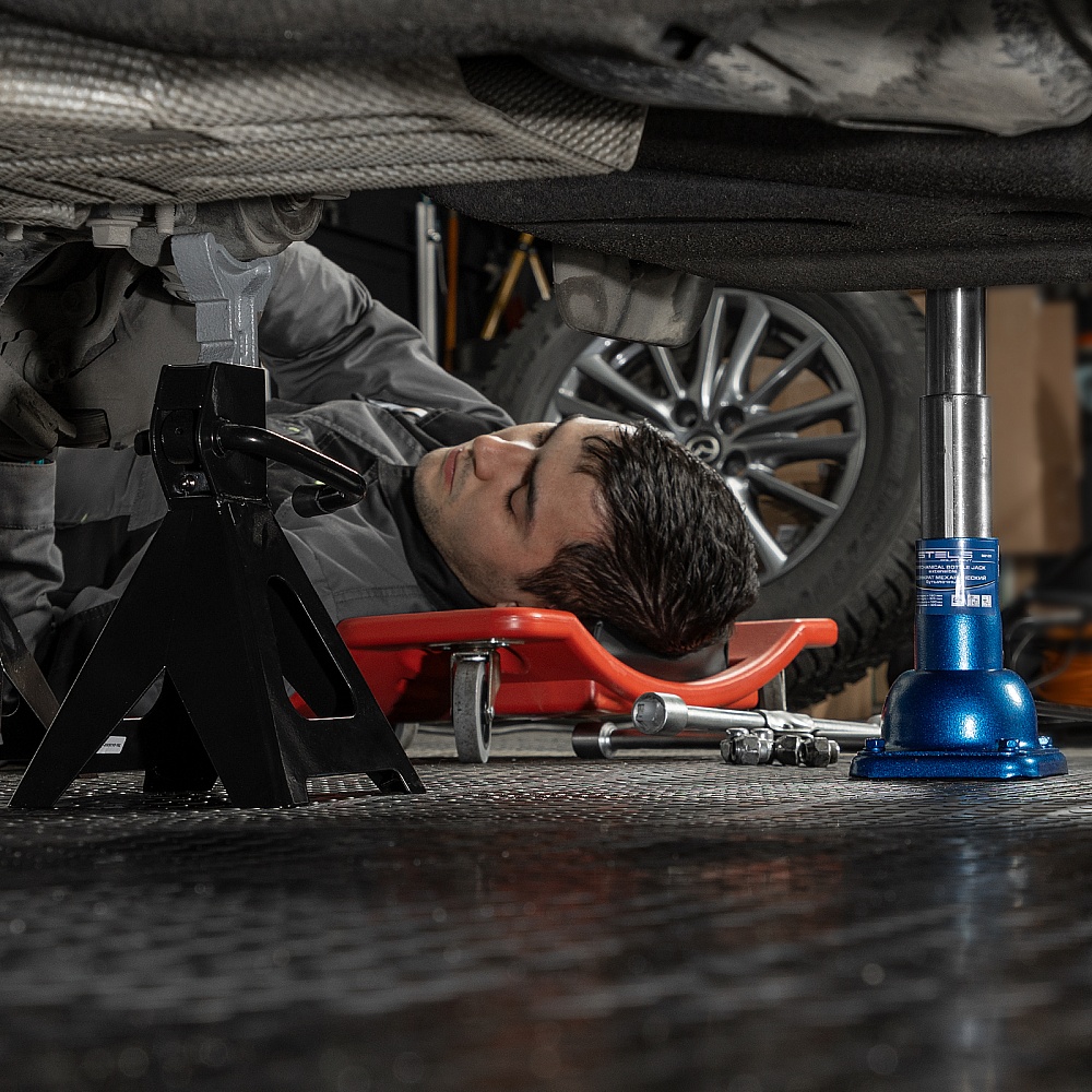 - Удобная транспортировка — компактный домкрат весом 3,93 кг легко помещается в багажник автомобиля.