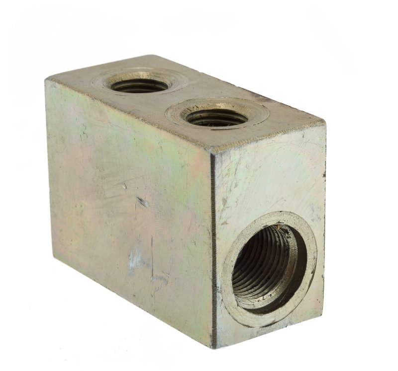Обратный клапан. Предотвращает смену направления движения гидравлической жидкости, поток свободно движется в одном направлении и заблокирован в обратном.