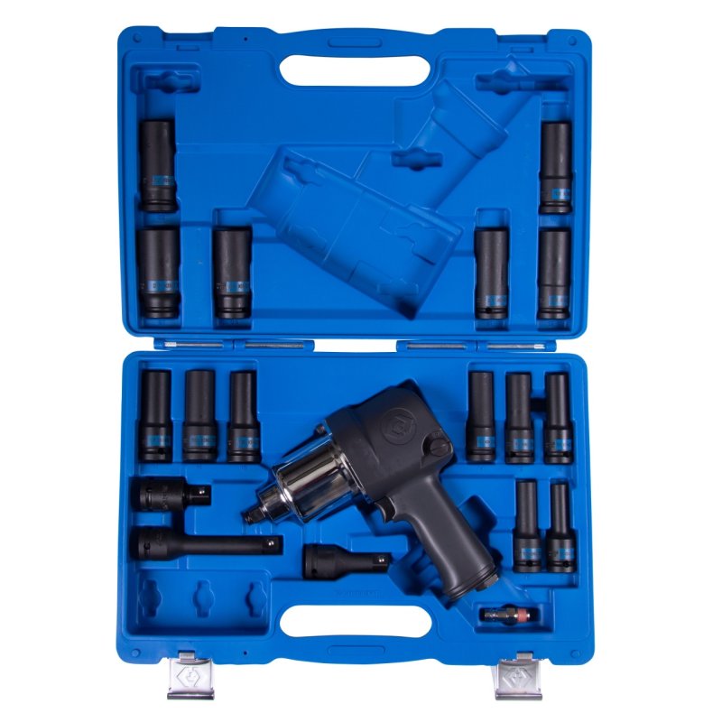 Гайковерт пневматический ударный 1/2", 881 Нм, с комплектом головок, 19 предметов KING TONY 44108AMP01
