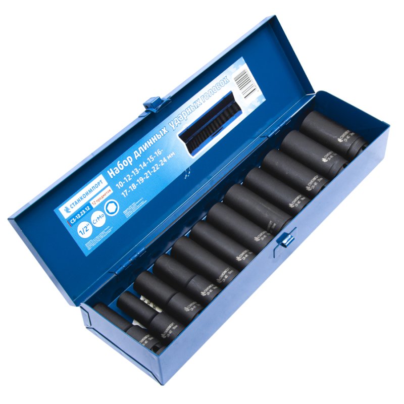 К ударным головкам предъявляются требования, которые резко отличаются от требований к обычным торцевым головкам. Ведь пневматический инструмент создает нагрузки совсем другого рода, а именно эти нагрузки носят ударный характер. Как следствие главным требованием к ударным головкам является, высокая ударостойкость. Именно этим обусловлено использование специального хром-молибденового сплава при их производстве. Также в качестве антикоррозионной обработки используется термохимическое покрытие — воронение или фосфатирование. Делается это по причине того что, хромникелевое покрытие при ударах может отслаивается. Ударные головки компании СТАНКОИМПОРТ изготовлены из высококачественных материалов и соответствуют всем требованиям стандартов ГОСТ и DIN Комплектация набора: Ударные головки: 10мм, 12мм, 13мм, 14мм, 15мм, 16мм, 17мм, 18мм, 19мм, 21мм, 22мм, 24мм. Металлический кейс.