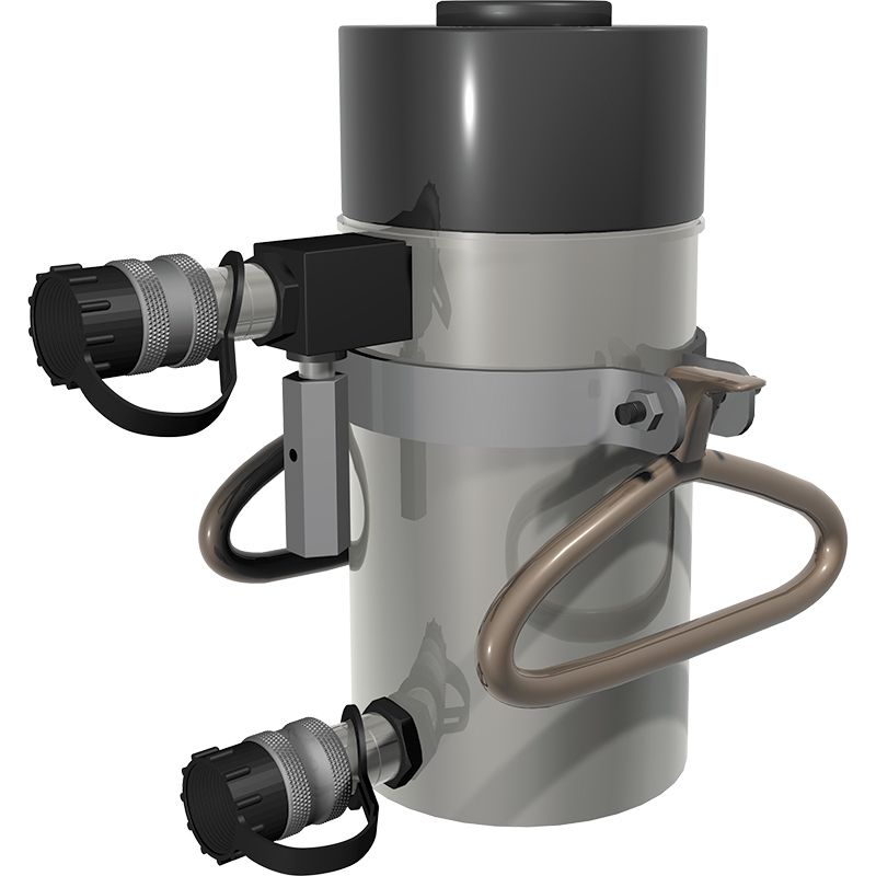 Цилиндр является гидравлической системой прямого и обратного действия. При помощи ручного либо ножного насоса гидравлическая жидкость по шлангу подается в гидравлический цилиндр, который начинает работу. Насос по отношению к цилиндру должен иметь одинаковый либо больший объём гидравлического масла, для того чтобы создавать максимальное рабочее давление.
