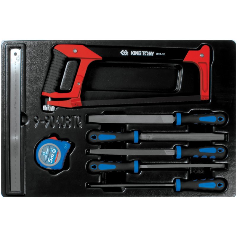 KING TONY Набор напильников, рулетка, линейка и ножовка, ложемент, 8 предметов KING TONY 9-90408TQ