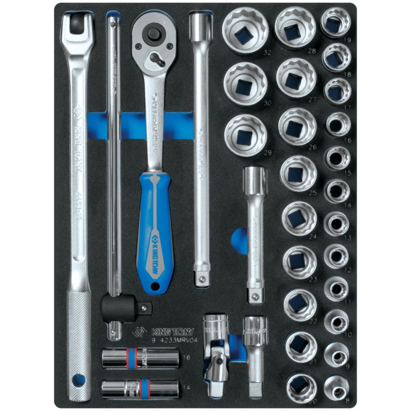 KING TONY Набор торцевых головок 1/2" с принадлежностями, двенадцатигранные, ложемент, 33 предмета KING TONY 9-4233MRV04