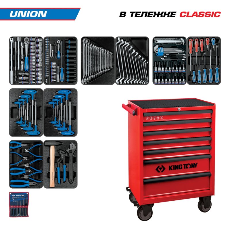 Набор инструментов 173 предмета, "UNION", в красной тележке KING TONY 934-000MR купить в Ростове-на-Дону цена ✅ - Все для СТО