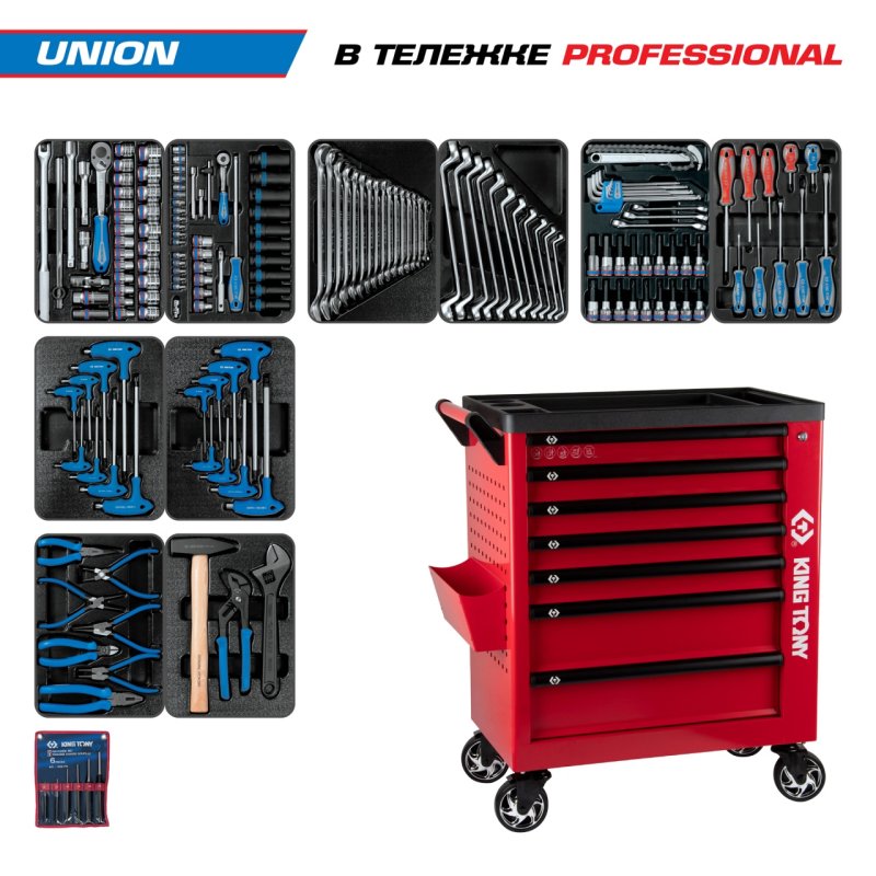 Набор инструментов 173 предмета, "UNION", в красной тележке KING TONY 9G38-000MRR купить в Ростове-на-Дону цена ✅ - Все для СТО