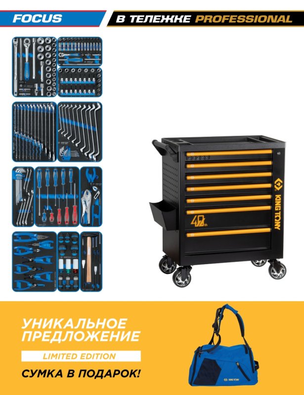 Набор инструментов 188 предметов, "FOCUS", в черной тележке KING TONY 9G38-188MRV40 купить в Ростове-на-Дону цена ✅ - Все для СТО