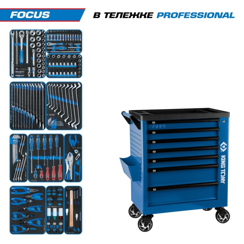 Набор инструментов 188 предметов, "FOCUS", в синей тележке KING TONY 9G38-188MRVB купить в Ростове-на-Дону цена ✅ - Все для СТО