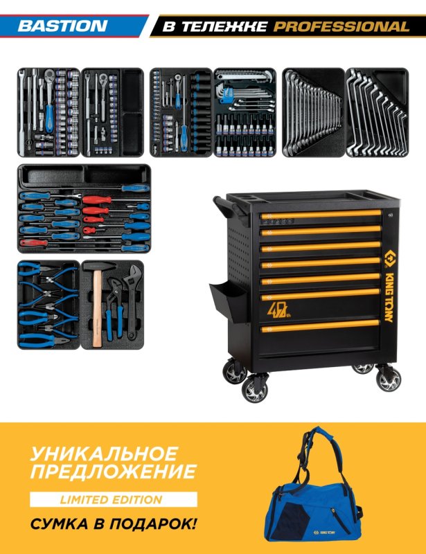 Набор инструментов 204 предмета, "BASTION", в черной тележке KING TONY 9G38-100MR40 купить в Ростове-на-Дону цена ✅ - Все для СТО