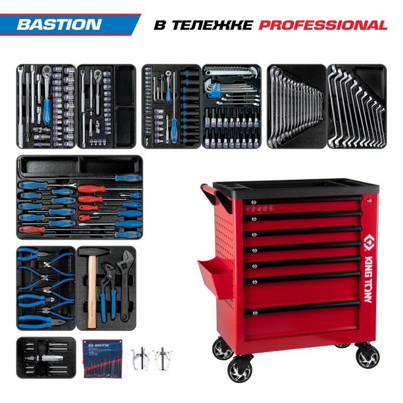 Набор инструментов 204 предмета, "BASTION", в красной тележке KING TONY 9G38-100MRR купить в Ростове-на-Дону цена ✅ - Все для СТО