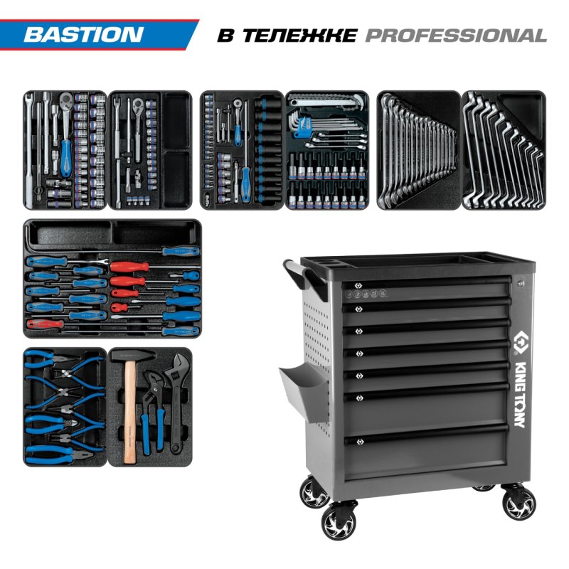 Набор инструментов 204 предмета, "BASTION", в серой тележке KING TONY 9G38-100MRG купить в Ростове-на-Дону цена ✅ - Все для СТО