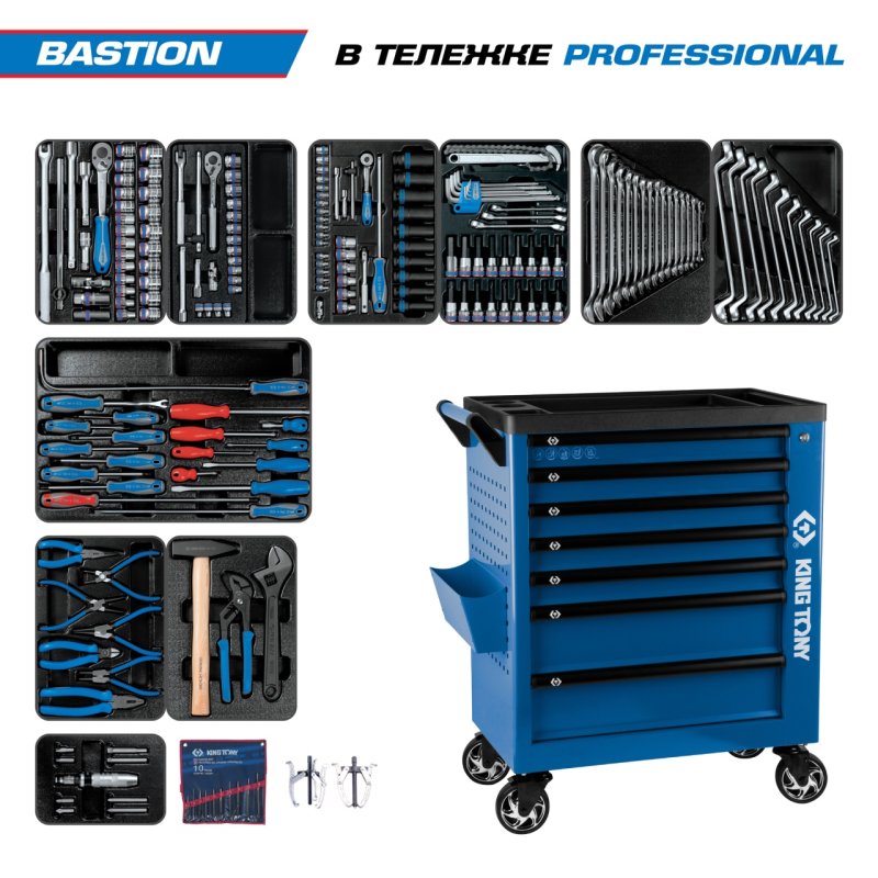Набор инструментов 204 предмета, "BASTION", в синей тележке KING TONY 9G38-100MRB купить в Ростове-на-Дону цена ✅ - Все для СТО