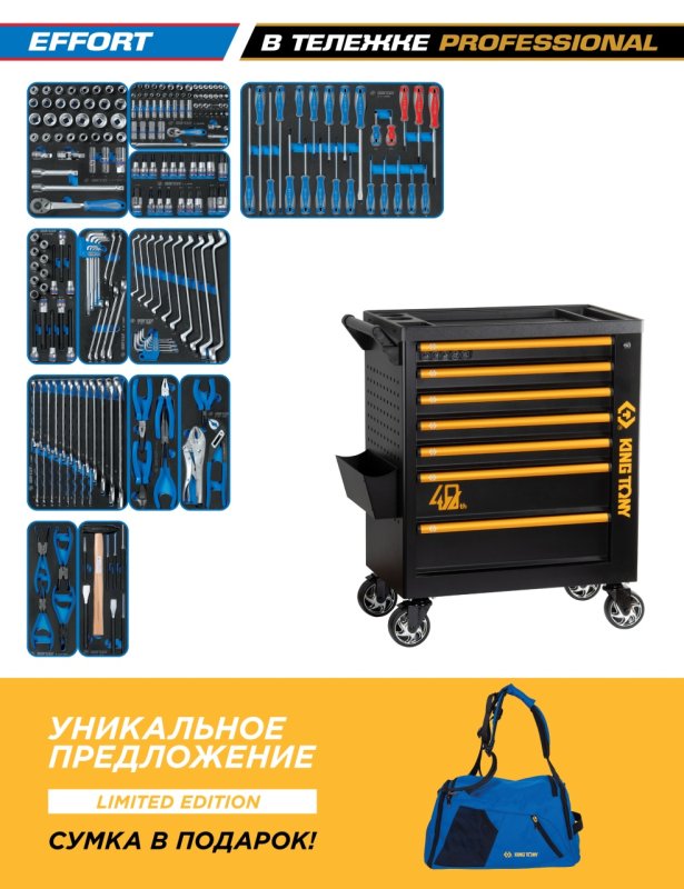 Набор инструментов 235 предметов, "EFFORT", в черной тележке KING TONY 9G38-235MRV40 купить в Ростове-на-Дону цена ✅ - Все для СТО