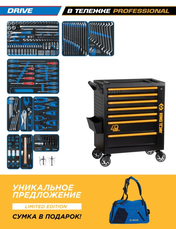 Набор инструментов 251 предмет, "DRIVE", в черной тележке KING TONY 9G38-251MRV40 купить в Ростове-на-Дону цена ✅ - Все для СТО