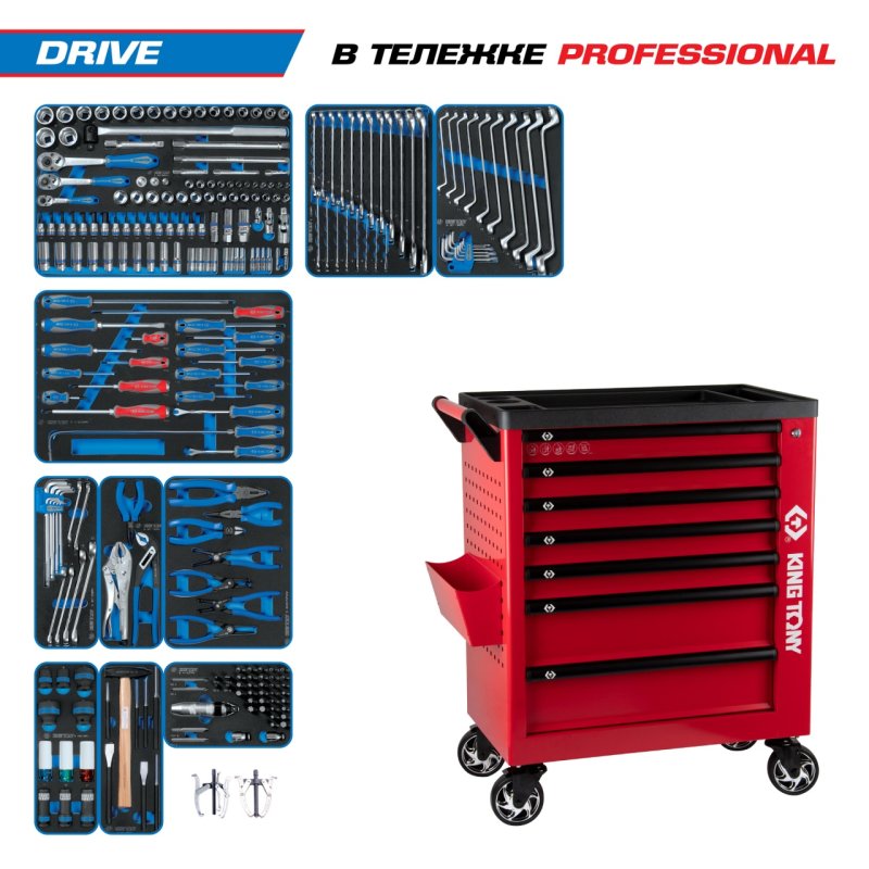 Набор инструментов 251 предмет, "DRIVE", в красной тележке KING TONY 9G38-251MRVR купить в Ростове-на-Дону цена ✅ - Все для СТО