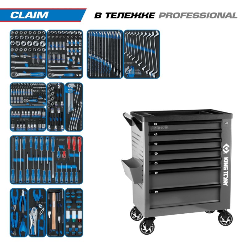 Набор инструментов 286 предметов, "CLAIM", в серой тележке KING TONY 9G38-286MRVG купить в Ростове-на-Дону цена ✅ - Все для СТО