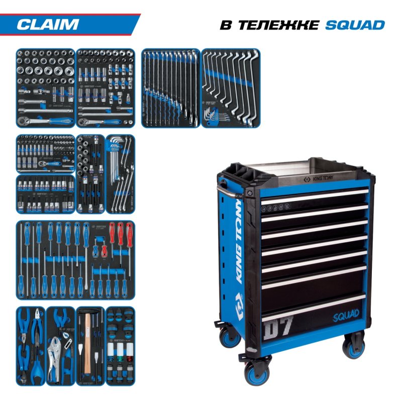 Набор инструментов 286 предметов, "CLAIM", в синей тележке KING TONY 9SQ31-286MRV купить в Ростове-на-Дону цена ✅ - Все для СТО