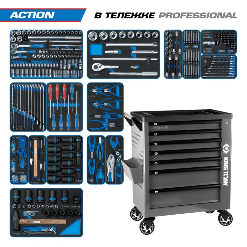 Набор инструментов 327 предметов, "ACTION", в серой тележке KING TONY 9G38-327MRVG купить в Ростове-на-Дону цена ✅ - Все для СТО