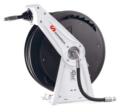Катушка из алюминия и композитных материалов с одной опорой для консистентной смазки под высоким давлением Основные характеристики • Алюминиевое основание и опора обеспечивают прочность для работы в самых тяжелых условиях и в то же время небольшой вес, позволяющий легко снять катушку • Алюминиевое основание и опора с покрытием на основе порошковой эпоксидной смолы, бобина из композитного материала и крепежи из нержавеющей стали обеспечивают защиту от коррозии в условиях повышенной влажности • Никелированный вал и шарнир противостоят износу и коррозии и обеспечивают совместимость с широким рядом жидкостей . • Бобина монтирована на два не требующих регулярной смазки шарикоподшипника упрощает разматывание шланга и улучшает характеристики пружины . •Большая эффективная радиальная площадь запирания . • Устройство выпуска шланга с шестью роликами повышает долговечность шланга, предотвращает зажим шланга и снижает трение