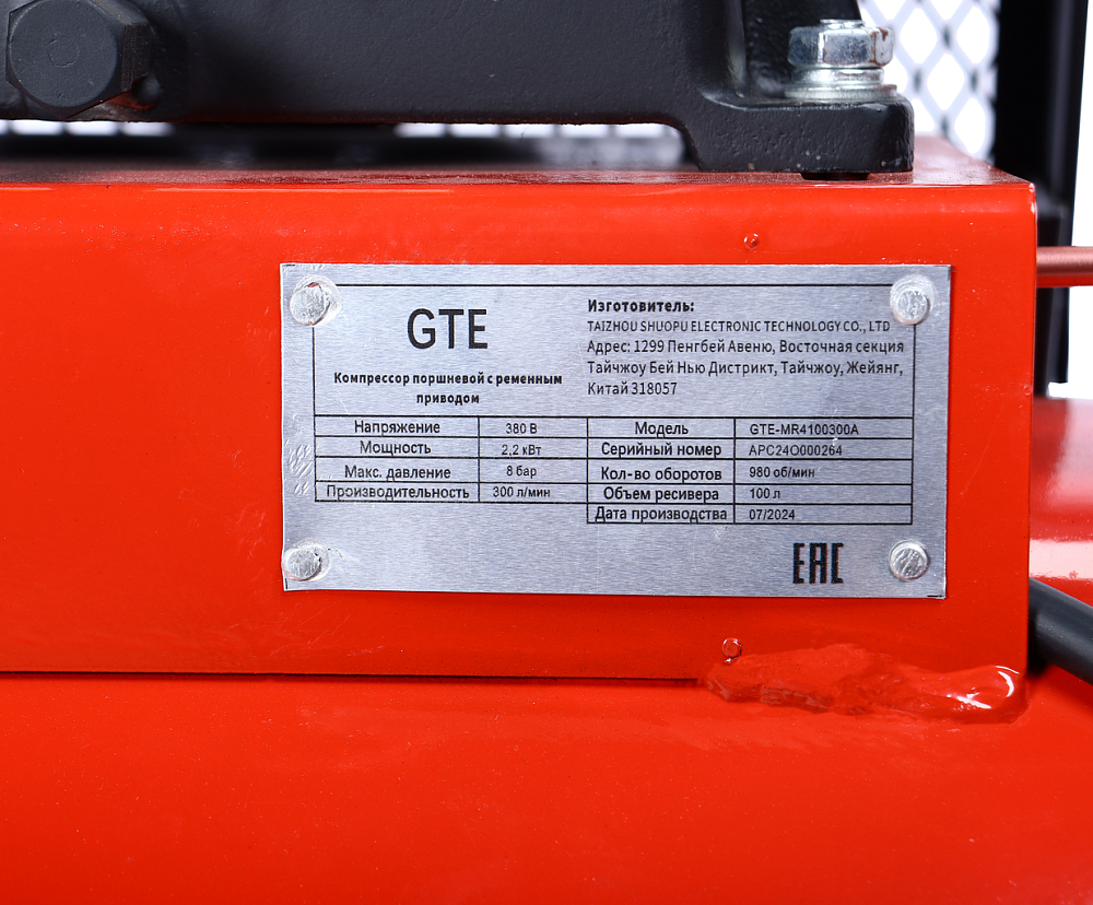 GTE-MR4100300A Компрессор поршневой с ременным приводом 380В купить в Ростове-на-Дону цена ✅ - Все для СТО