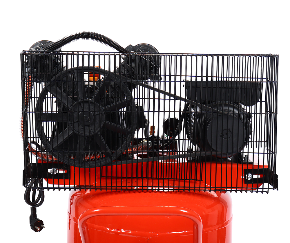Компрессор поршневой с ременным приводом. Вертикальный - более компактные, занимают меньше места в помещении. Обеспечивает равномерный со всех сторон износ цилиндра и сальников для более продолжительного срока службы самого компрессора. Ресивер 100 л, производительность 300 л/мин. Напряжение 220 В. Мощность: 2,2 кВт. Применим в автосервисе, шиномонтаже и в гараже. Гарантия 24 месяца.