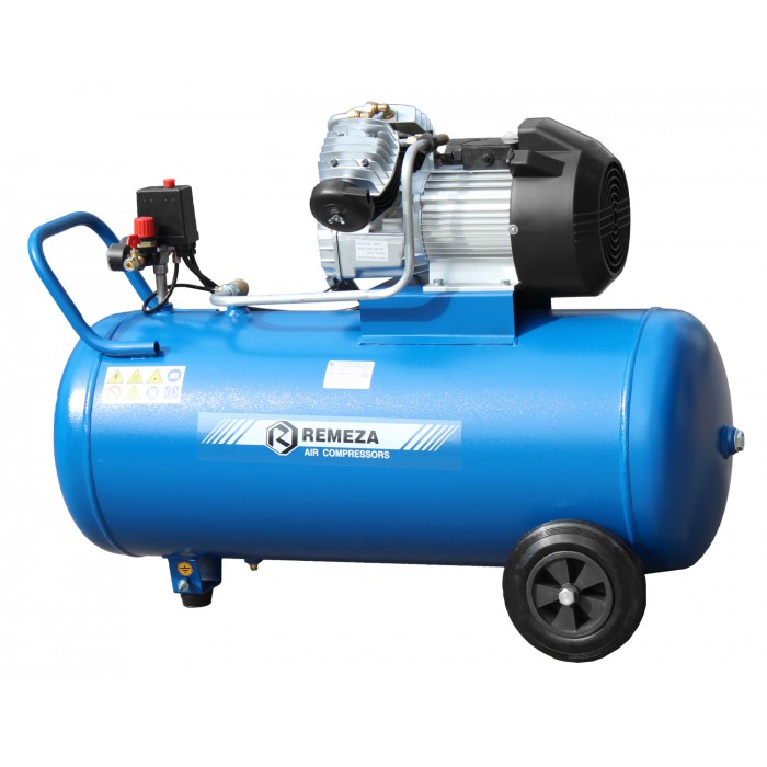 Воздушный поршневой компрессор REMEZA с ресивером 100 л, масляный, мощностью 2,2кВт, Напряжение 220В. Производительностью 400 л/мин с коаксиальным приводом применяется в строительных, автосервисных и медицинских работах.