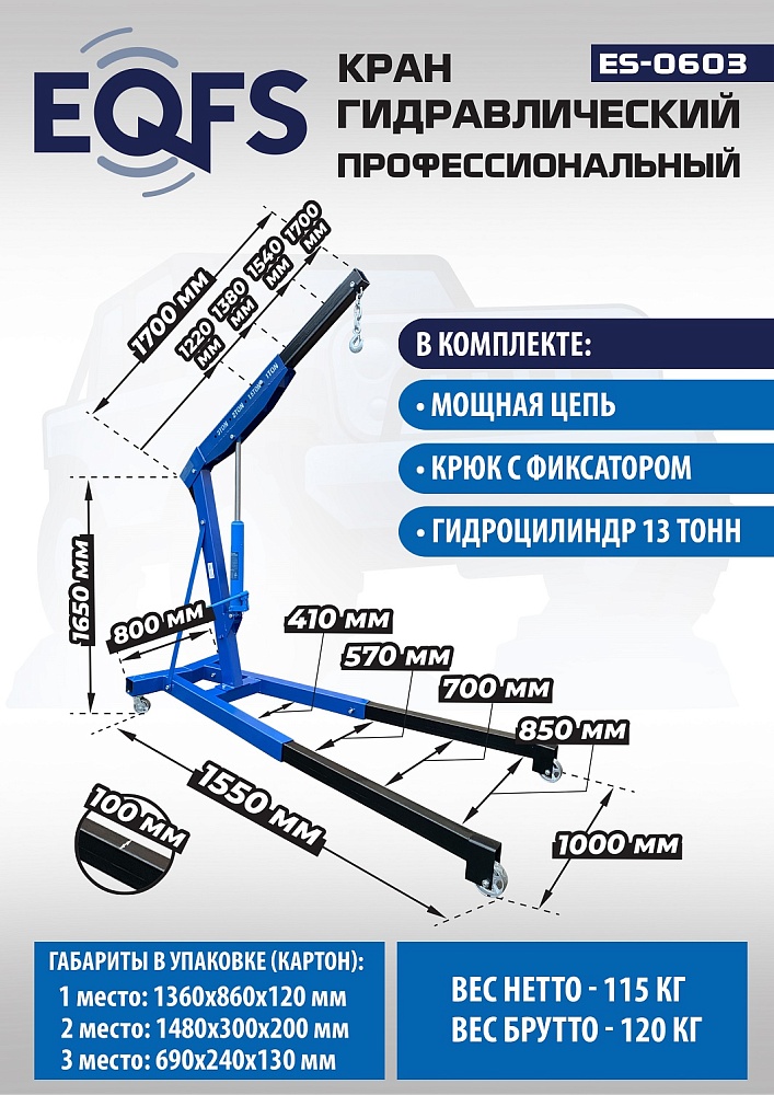 ES-0603 Кран гаражный, 3 т купить в Ростове-на-Дону цена ✅ - Все для СТО