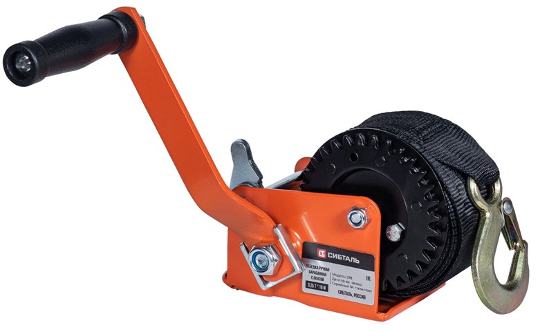 Лебедка ручная барабанная СибТаль, модель LRB, 800 кг, лента 10 м