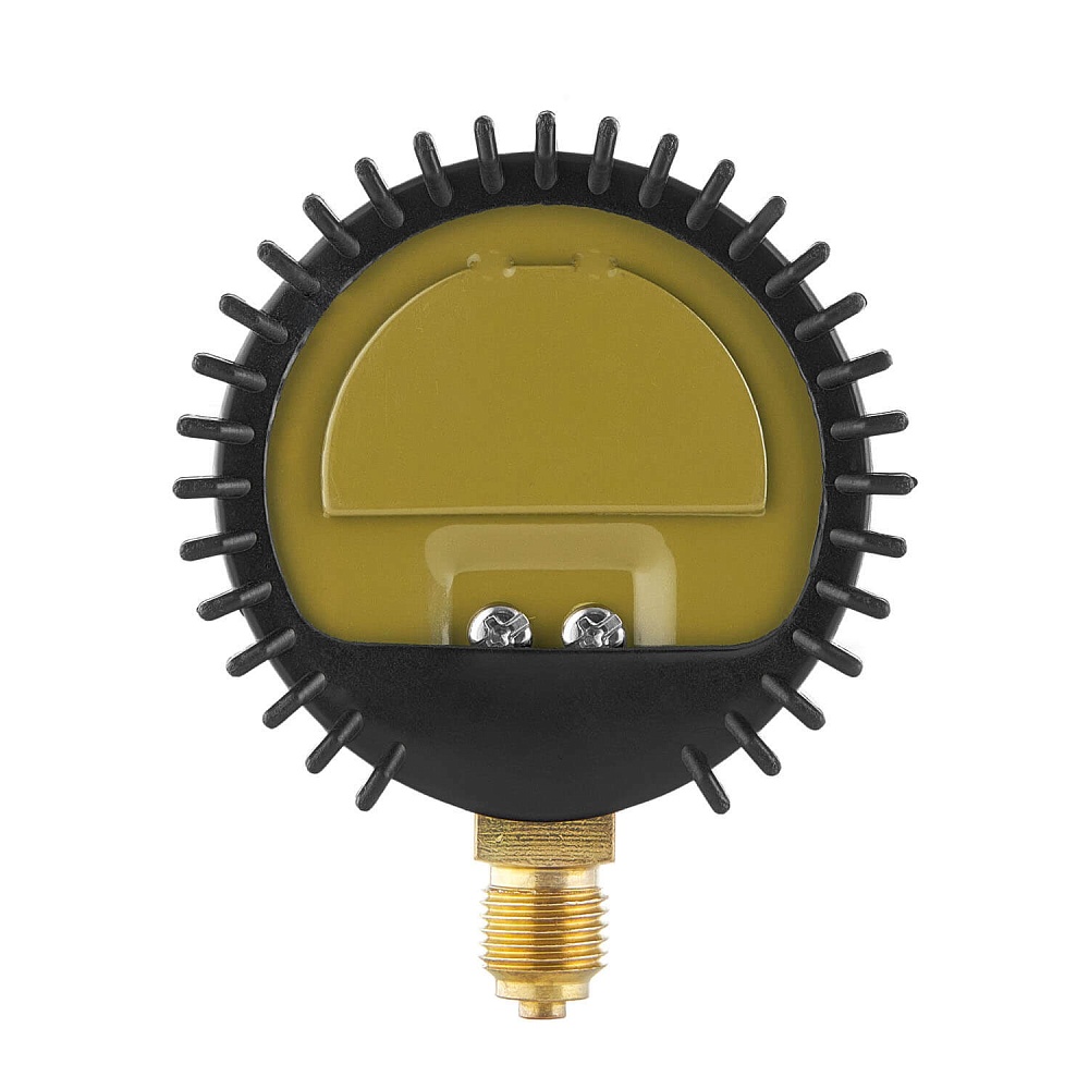 Диаметр корпуса манометра 63 мм. Корпус дополнительно защищен резиновым кожухом для сохранности манометра от механических повреждений.