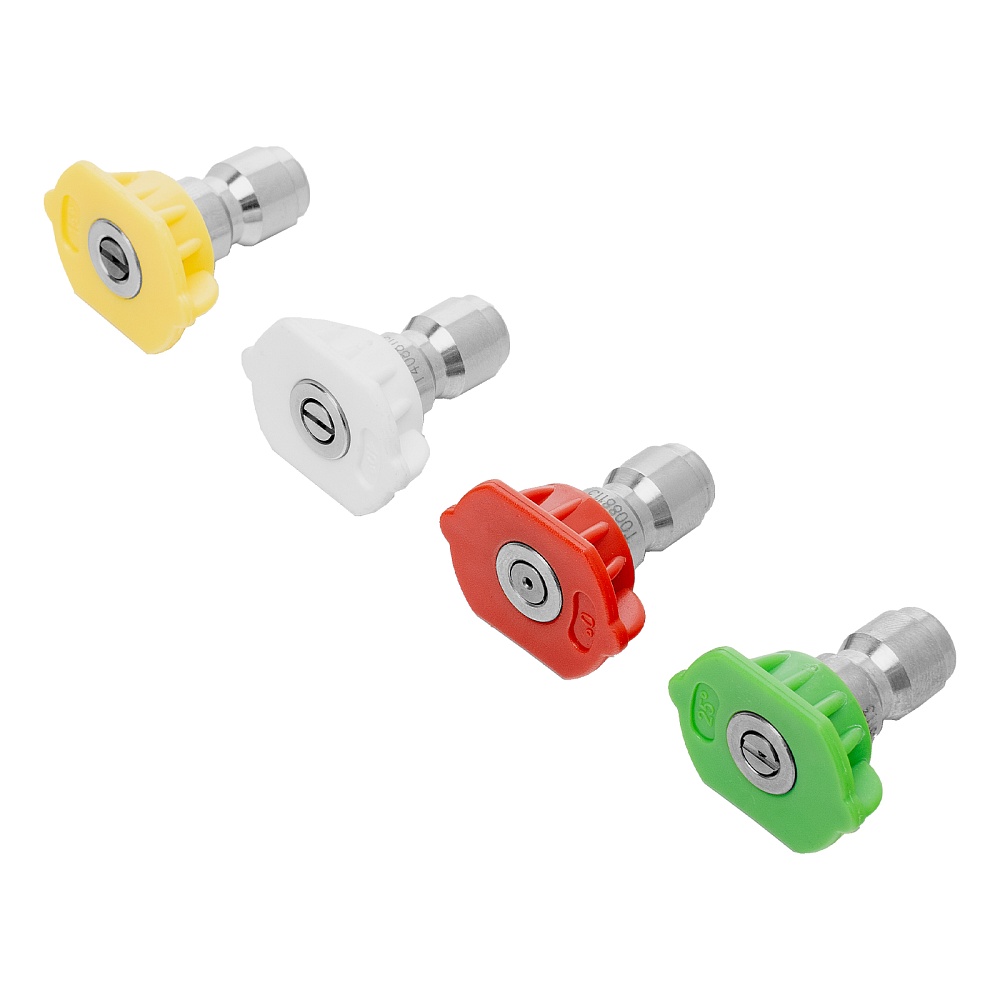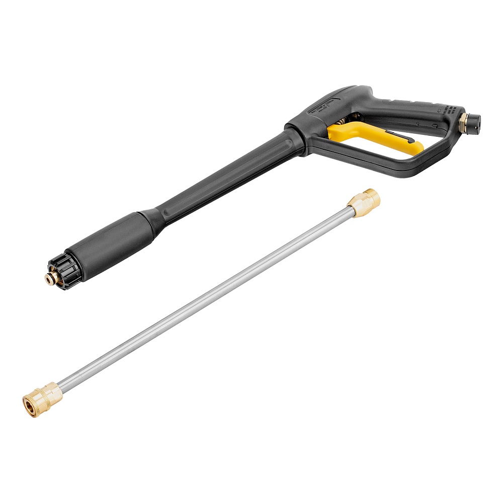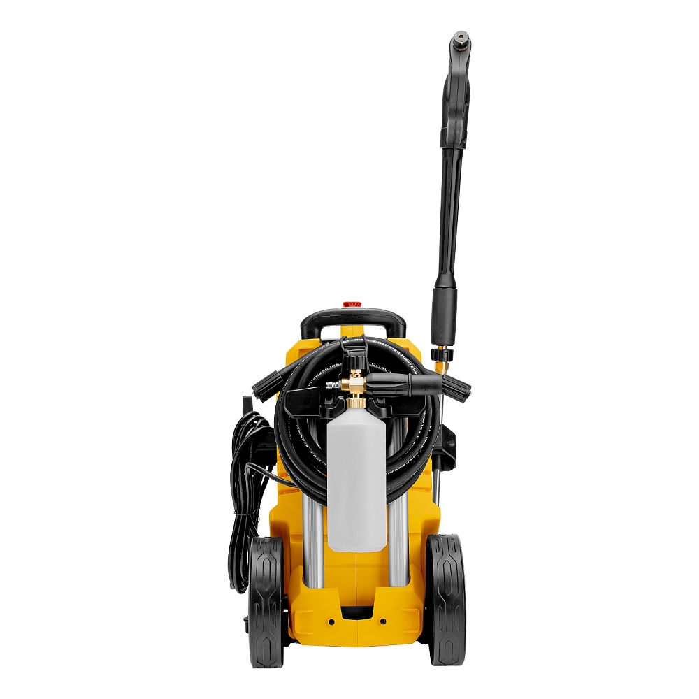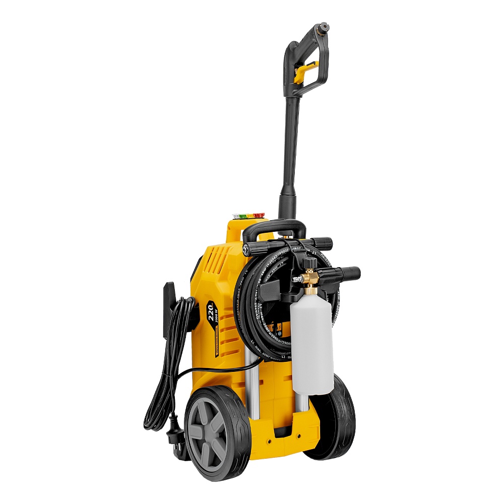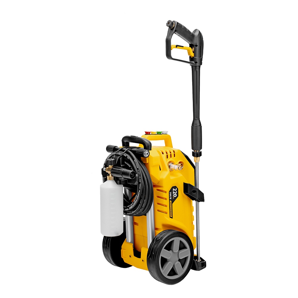 Мойка высокого давления, Шланг высокого давления, Пистолет моечный, Насадка-удлинитель, Форсунки 4 шт., Пеногенератор с бачком для моющего средства, Входной штуцер с фильтром, быстросъемный коннектор шланга, Игла для прочистки сопла, Инструкция по эксплуатации с гарантийным талоном