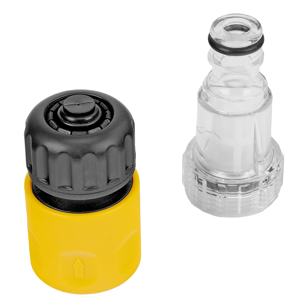 Мойка высокого давления, Шланг высокого давления, Пистолет моечный, Насадка-удлинитель пистолета, Регулируемая насадка-сопло, Пеногенератор с бачком для моющего средства, Входной штуцер с фильтром, Быстросъемный коннектор шланга, Игла для прочистки сопла, Кронштейн-держатель пистолета, Кронштейн для кабеля питания, Комплект крепежа, Инструкция по эксплуатации с гарантийным талоном