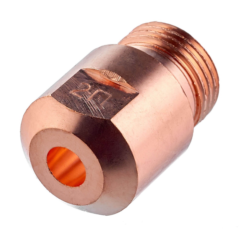 Медный наружный мундштук для пропановых инжекторных резаков Р3П, Р3ПУ и Р333. Маркировка мундштука №2П. Толщина разрезаемого металла зависит от установленного внутреннего мундштука. Совместим с внутренними мундштуками № 1П, 2П, 3П, 4П, 5П, 6П.