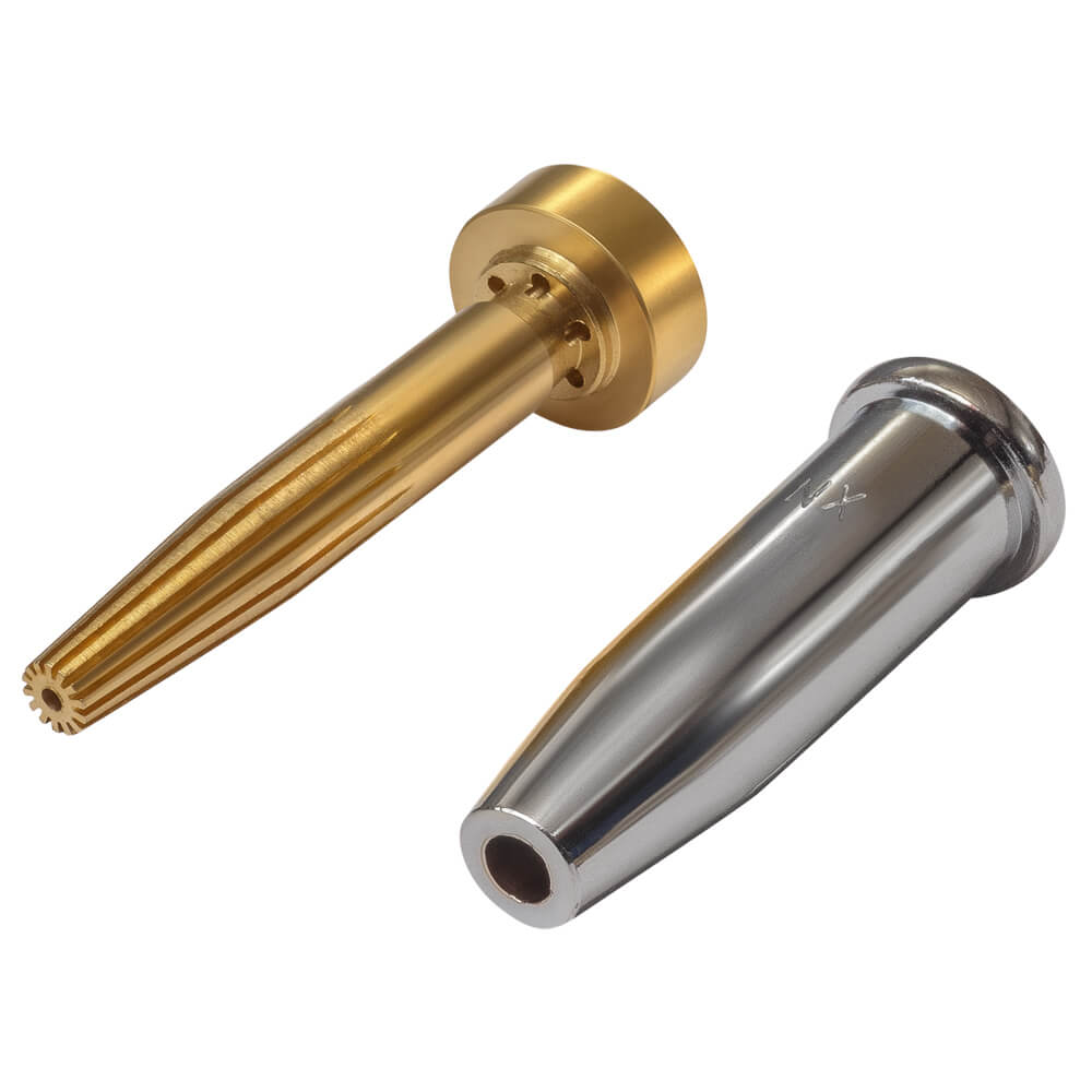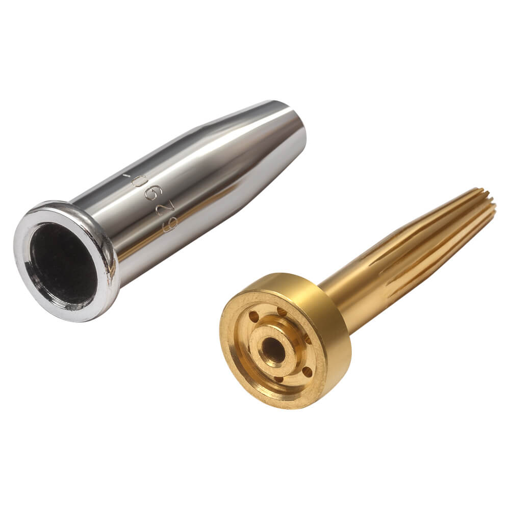 Латунный внутренний мундштук №2 для инжекторных пропановых резаков Р1П, Р1ПУ и ацетиленовых резаков Р1А. Толщина разрезаемого металла 15–30 мм.