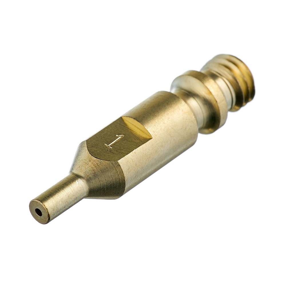 Латунный внутренний мундштук №1 для инжекторных пропановых резаков Р1П, Р1ПУ и ацетиленовых резаков Р1А. Толщина разрезаемого металла 8–15 мм.