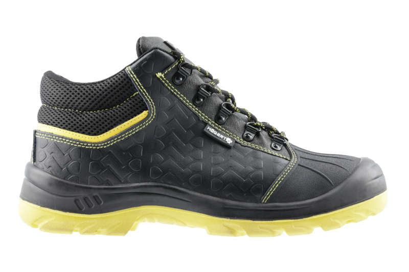 Мужские защитные ботинки соответствуют классу безопасности S1P согласно ISO 20345:2011.  Обувь из кожи комфортна и удобна. Оснащена стальным носком, который защищает пальцы ног от падающих предметов. Благодаря противоскользящей подошве ботинки  идеально подходят для ходьбы по неровным и скользким поверхностям. Обувь рекомендуется для работников логистики, в автомобильной промышленности, ремонтных  и строительных сферах.