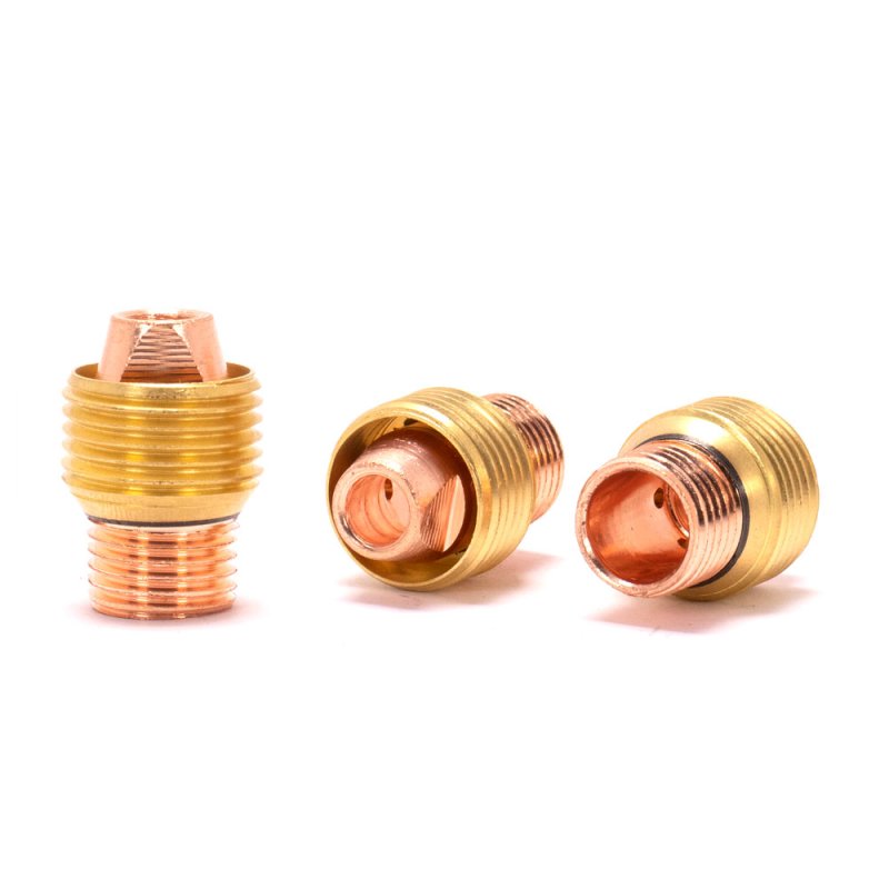 Держатель цанги – устройство для крепления цанги в TIG горелке. С помощью отверстий в цангодержателе защитный газ во время TIG сварки подаётся к сварочной ванне и защищает её от вредного воздействия кислорода. GasLens помогает сделать поток газа равномерным по всей площади пятна контакта. Чаще всего применяется для предотвращения побежалости, а так же при невысоком качестве защитного газа.