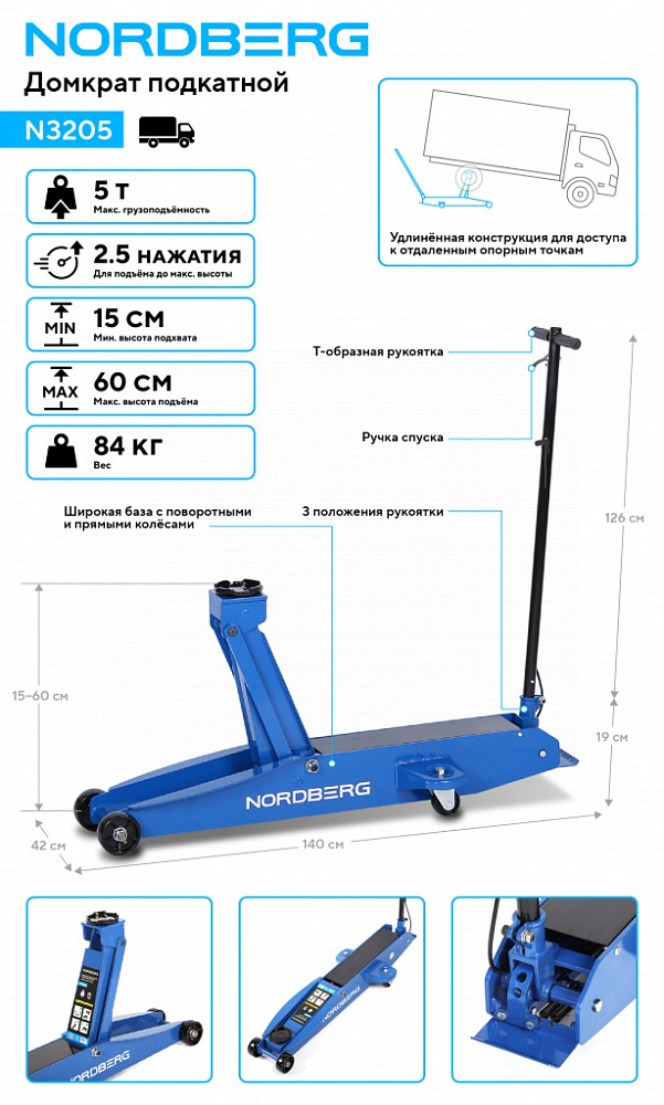 NORDBERG N3205 — мощный, надёжный и безопасный домкрат, созданный для профессионалов, которые ценят высокую производительность и долговечность оборудования.