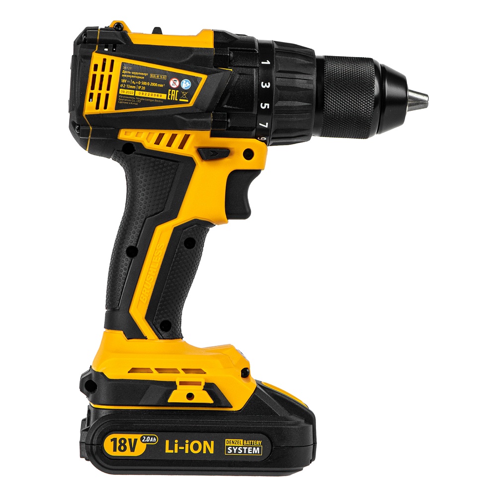 Дрель-шуруповерт аккумуляторная, бесщет. BLDL-IB-18-02, Li-Ion, 18 В, 2 акк. Denzel