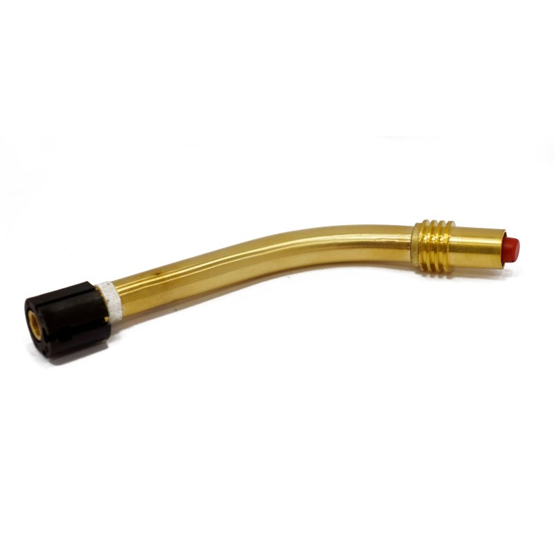 Гусак – заменяемая часть горелки для полуавтоматической сварки. Замена гусака может потребоваться в случае выхода из строя данного элемента либо необходимости выполнения специфичных сварочных задач. На гусак устанавливаются сопло и наконечник. В рукоятке горелки гусак подключается к силовому кабелю и шлангу подачи газа. Если горелка оснащена жидкостным охлаждением, на гусаке появляются фитинги для подключения воды.