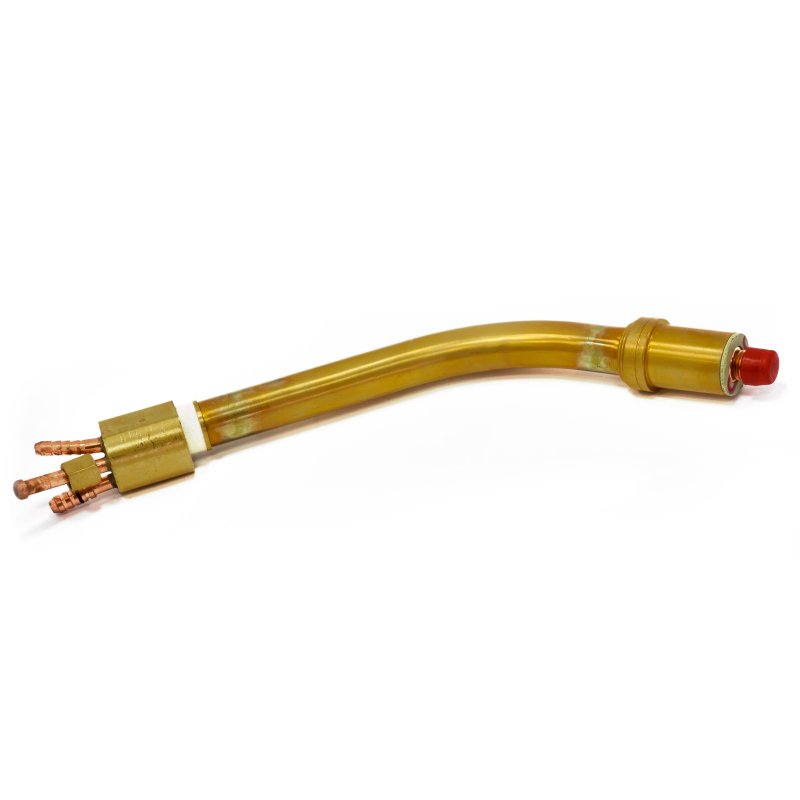 Гусак – заменяемая часть горелки для полуавтоматической сварки. Замена гусака может потребоваться в случае выхода из строя данного элемента либо необходимости выполнения специфичных сварочных задач. На гусак устанавливаются сопло и наконечник. В рукоятке горелки гусак подключается к силовому кабелю и шлангу подачи газа. Если горелка оснащена жидкостным охлаждением, на гусаке появляются фитинги для подключения воды.