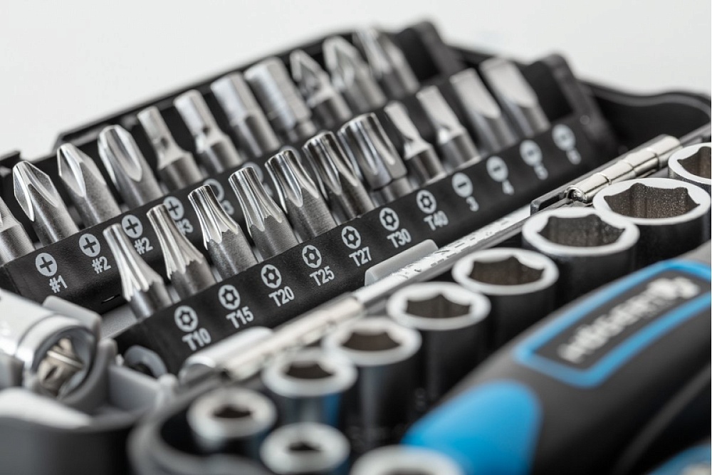 Набор торцевых головок, отверточных битов, аксессуаров 1/4”.