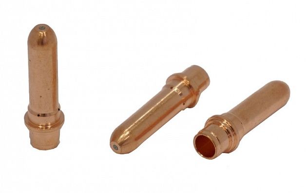 Катод - расходная часть плазмотрона. Оснастку изготавливают из сплава меди и латуни. Данный сплав обладает отличными показателями токопроводимости, высокими прочностными характеристиками, а так же способствует лучшему теплоотводу. Чаще всего для работы в нейтральных плазмообразующих средах в качестве сердечника электрода используют вольфрам, в окислительных средах применяют катоды из циркония или гафния.