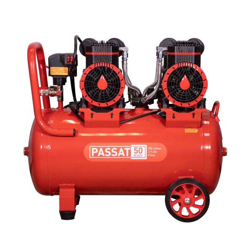 PASSAT BLACK – линейка поршневых безмасляных компрессоров со сниженным уровнем шума и высокой производительностью. «Сухие» компрессоры PASSAT будут востребованы в быту, в небольшой мастерской в медицине или на пищевом производстве. Спаренные блоки цилиндров, установленные по двум сторонам электродвигателя, делают систему сбалансированной, снижают уровень вибрации и шума.