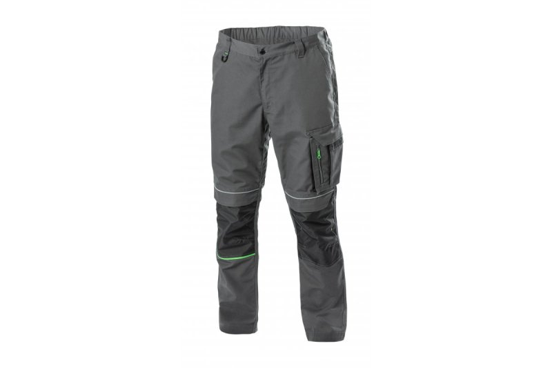 Брюки доступны в стильном темно-сером цвете с зелеными акцентами и широкой гамме размеров (от S до 3XL). Идеально подходит для производственных и строительных рабочих. Также рекомендуется для слесарей, сервисных и технических специалистов.