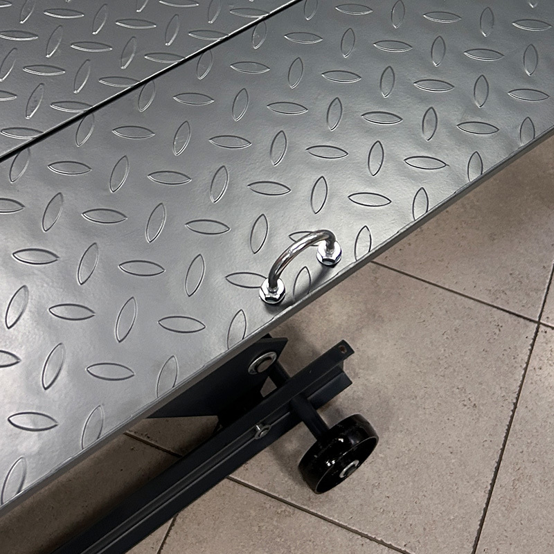 Подъемник оснащен механическим перекидным зажимом, имеющим достаточно широкий диапазон по размеру зажимаемых колес и возможность увеличения длины платформы на 200 мм благодаря выдвижной конструкции зажима. На платформе есть дуги, позволяющие закрепить мототехнику стяжными ремнями к самой платформе.