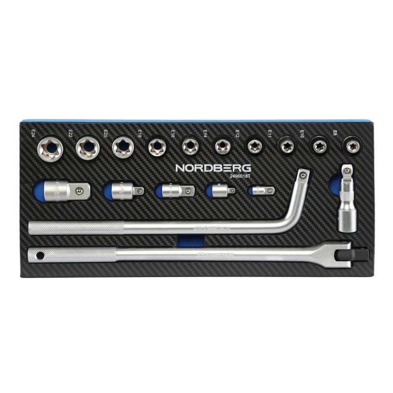 Набор головок 1/2" в ложементе, 18 предметов для тележки NORDBERG 2496018T