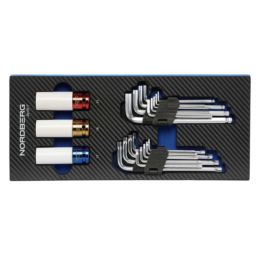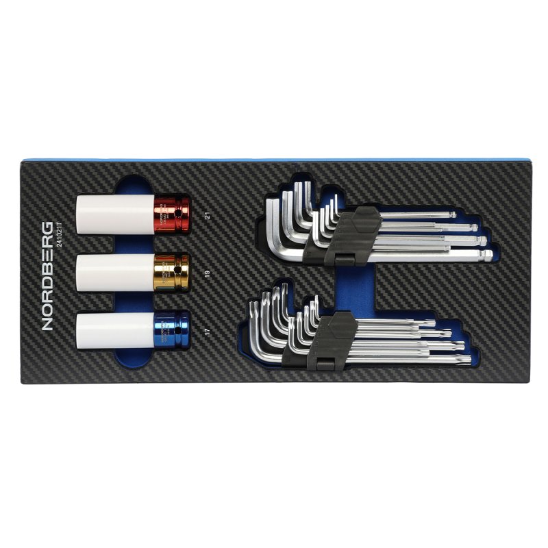 Набор шестигранных ключей и ударных головок 21 предмет в ложементе для тележки NORDBERG 241021T