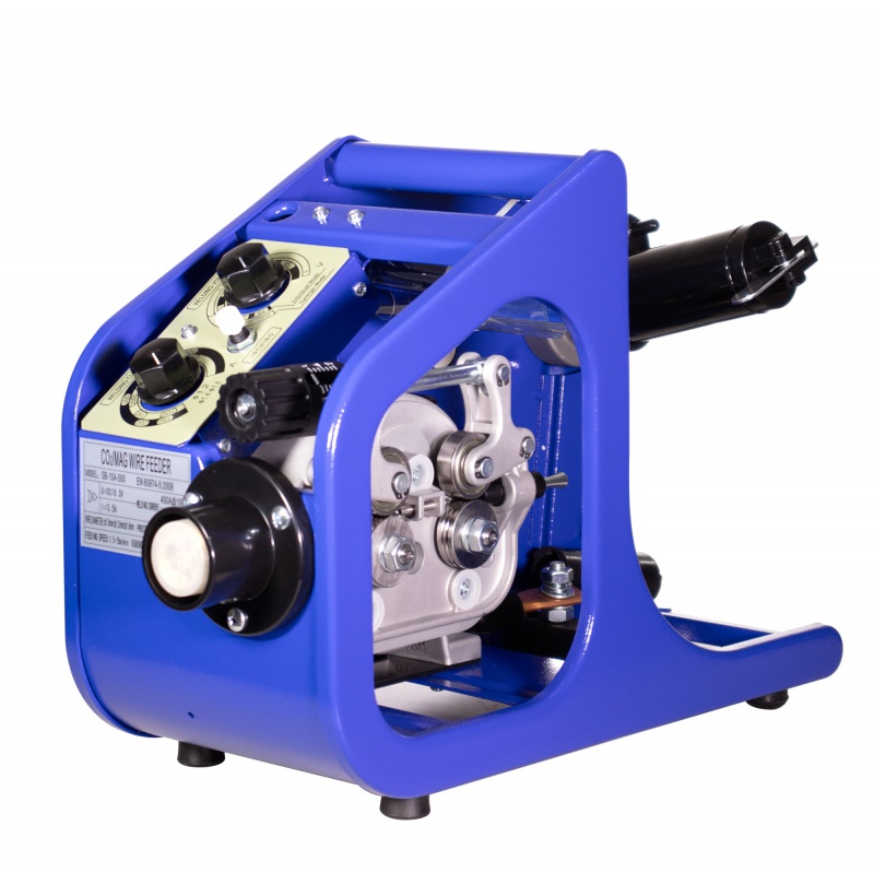 Механизм подачи проволоки предназначен для работы в паре с промышленными источниками полуавтоматической сварки. Благодаря пакету промежуточных кабелей выносной ПМ позволяет сварщику работать на значительном удалении от силового блока инвертора. Органы управления на форнтальной панели позволяют корректировать режим непосредственно с подающего механизма. 4х роликовый механизм протяжки обеспечивает плавную и равномерную подачу проволоки в зону сварки.