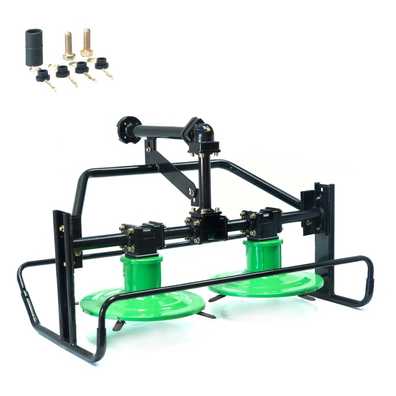 Роторная косилка предназначена для работ по заготовке сена и соломы. Устройство подходит для использования в полях с различными типами густой и высокой травы, для зерновых культур и даже кустарника (с толщиной стебля не более 10 мм). Диски косилки вращаются навстречу друг другу, 8 ножей, находящихся по сторонам дисков, под действием центробежной силы выходят за края кожуха и срезают траву. С помощью механизмов настройки, оператор сможет увеличить или уменьшить высоту стерни.